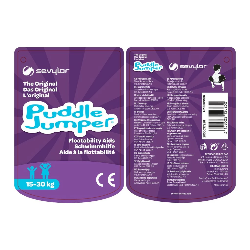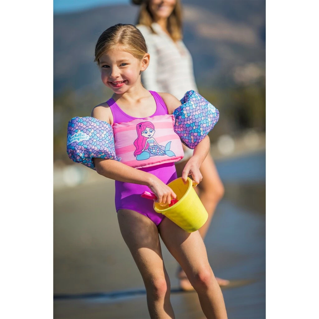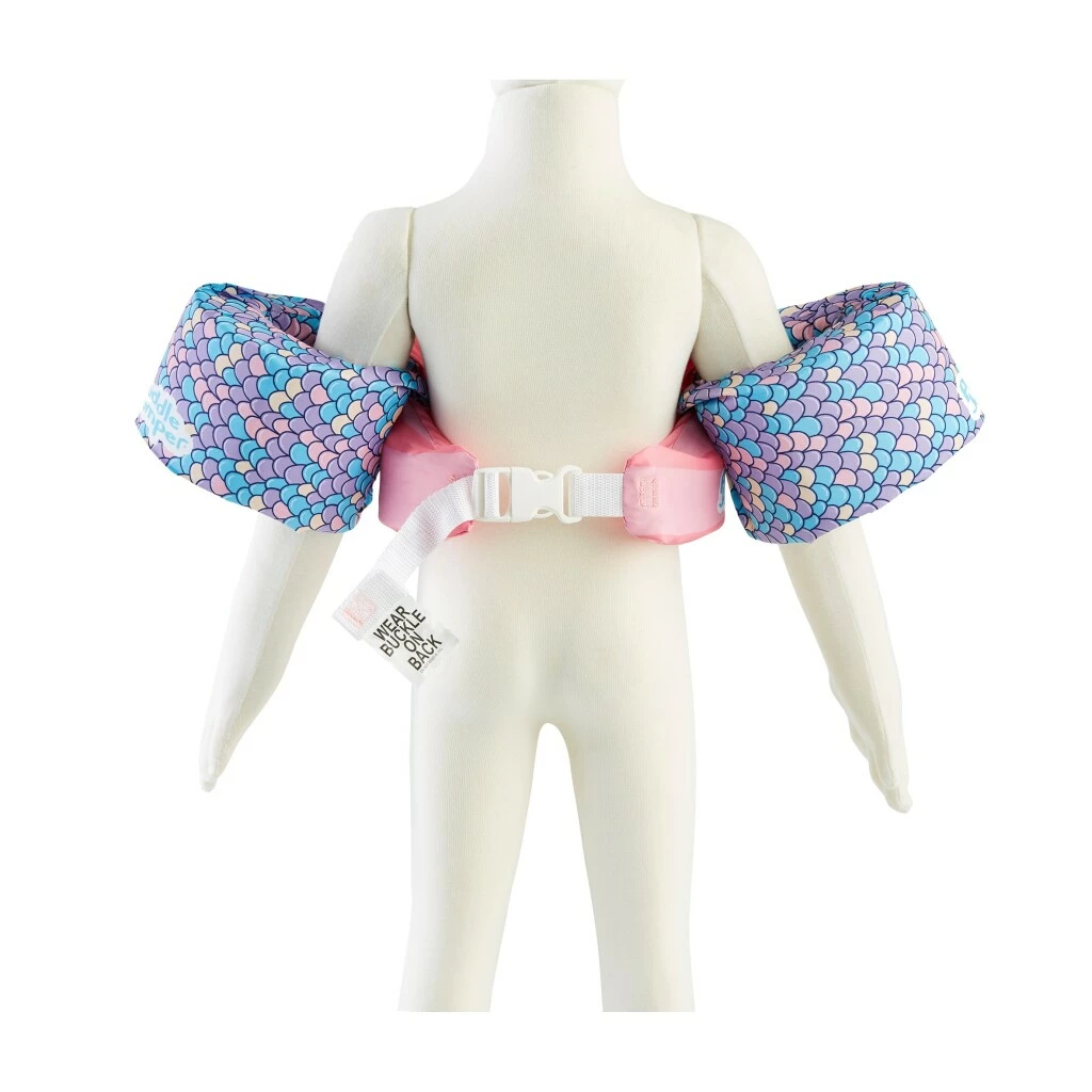 De comfortabele, zelfbalancerende Original Puddle Jumper is een revolutionair zwemhulpmiddel dat het hoofd van uw kind boven water houdt en bewegingsvrijheid biedt, zodat uw kind veilig kan zwemmen en spelen. Onder het leuke design van de Puddle Jumpers Zeemeermin schuilt een solide constructie van duurzame en veerkrachtige materialen. Dankzij de enkele instelbare gesp aan de achterzijde kan het kind in luttele seconden veilig worden vastgegespt, zonder stress voor de ouders – geen geworstel meer met tegensputterende kinderen aan de waterkant. Kenmerken: – Superstabiel: een booster voor het zelfvertrouwen van kleine zwemmers! – Volledig verstelbare en veilige pasvorm: ouders hebben er geen omkijken naar – Past perfect: volledige bewegingsvrijheid in het water en op het strand – Leuk 3D-design: kinderen dragen het graag! – Geschikt voor kinderen van 15 tot 30 kg. Aanbevolen leeftijd (jaren): 2 – 6 jaar.